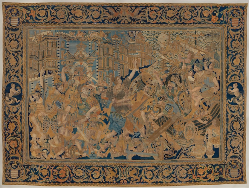 See also the entries on comparable hangings, from the same series, 'The Prophecy of Calchas' and 'The Sacrifice of Polyxena'.
