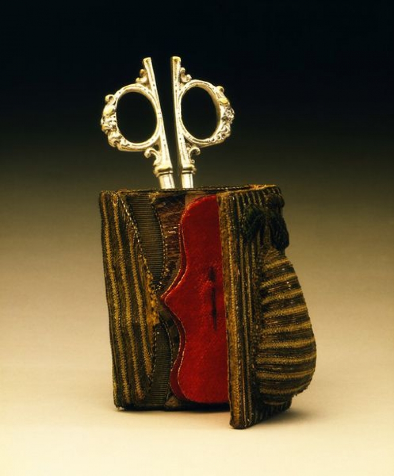 The Victoria and Albert Museum in London houses a late seventeenth century needlecase with scissors. The needlecase itself was probably made in Britain, but the scissors have been given a Dutch origin. When closed, the needlecase measures 8 x 7 cm. The case is made of embroidered silk, velvet and flannel.