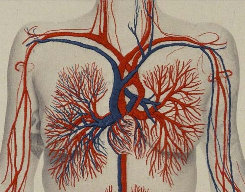 Juana Gomez is a Chilean artist and was born in Santiago, Chili in 1980. She is particularly known for her embroideries that show the human body, worked over faded photographs. Her embroideries show the veins, muscles and nerves of the human body.