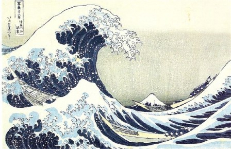 Katsushila Hokusai was an artist, painter and printmaker, who became especially famous for a series of woodblock prints 'Thirty-six Views of Mount Fuji', which includes the world-renowned print, 'The Great Wave off Kanagawa', made in the 1820's. He is sometimes accredited with having inspired the development of certain motifs of Japanese embroidery, as for instance in sashiko work.