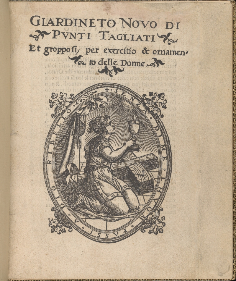 In keeping with his didactic objectives, especially as regards the role of women, his book entitled Ornamento delle belle et virtuose donne, for example, includes an embroidery design in the form of a floral border with a twisted rope (reflecting constraints and virtue), representing the female aspect. This design reappears in various forms in European embroidery until the end of the seventeenth century.