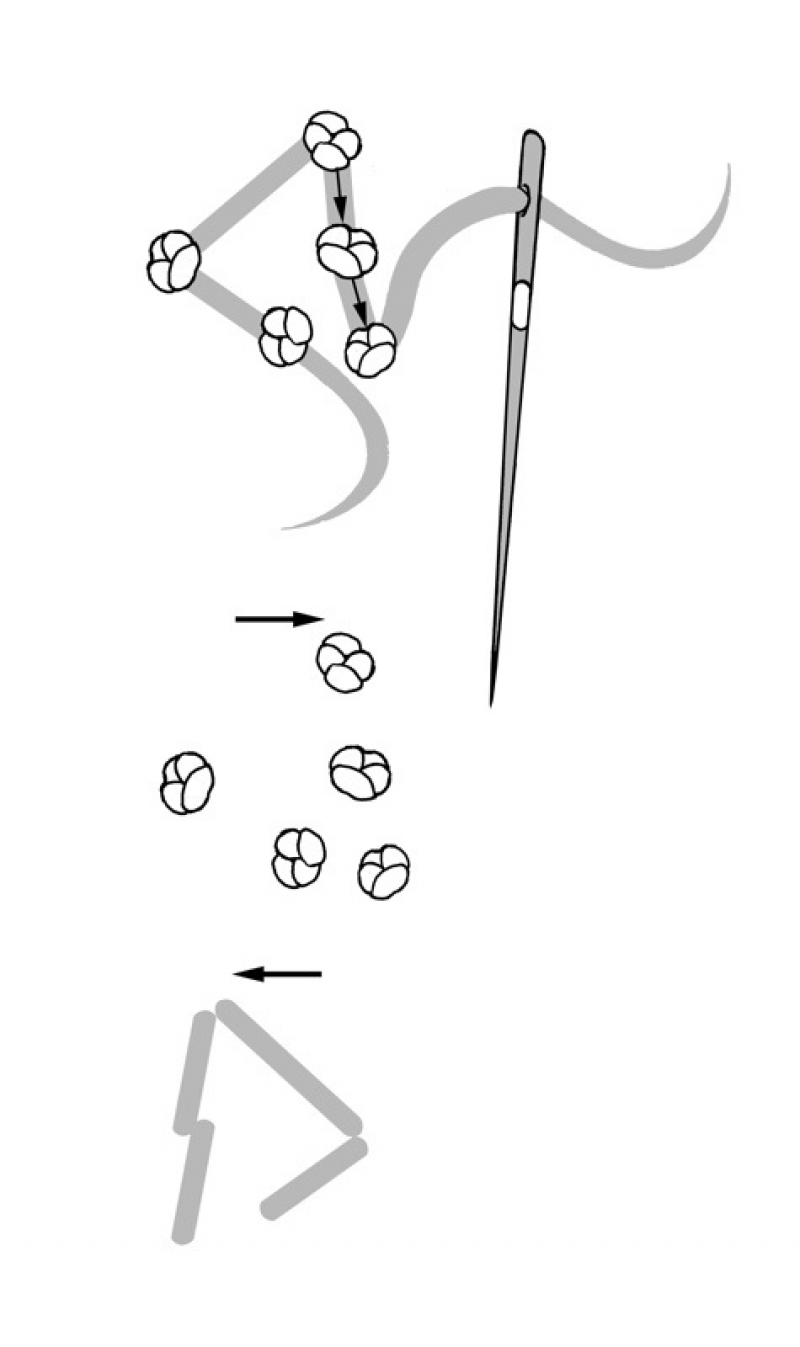 The process is repeated until a sufficient number of knots is produced. French knots are used as fillings for flower centres, for tiny powdered patterns and anywhere when the effect of a single dot is required.