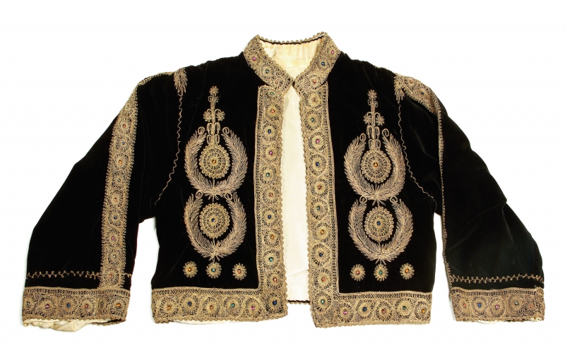 The exibition covered various themes, such as the history of craftsmanship and working with designers. It included items from the following, very diverse sources: the Hand & Lock archives, the Diana Springall Collection, the Bishopgate Institute archives, the Lightfoot archive, as well as the TRC Collection (lotus shoes from China, and the 'Bethlehem jacket' with imitation British military decoration, see illustration). The exhibition accompanied a one-day conference (13th July) about the history of embroidery, past, present and future.