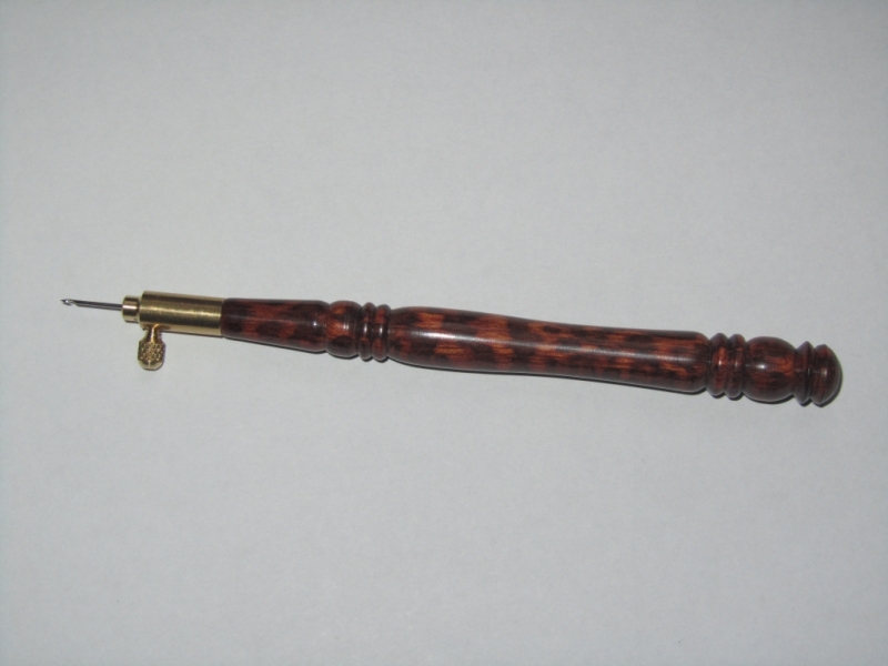 The crochet de Lunéville is an embroidery hook used specifically for the broderie perlée et pailletée of Luneville embroidery.