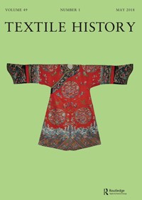Textile History: The Journal of the Pasold Research Fund Ltd., Volume 49, No. 1, May 2018. Routledge Taylor & Francis Group, Abingdon, illustrated with b/w and colour photographs, graphs and charts, 140 pp., individual subscription (print and online) euros 74. Published twice a year (in May and November).